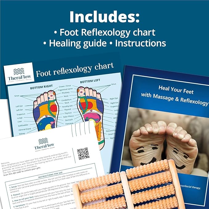 TheraFlow Foot Massager for Neuropathy & Plantar Fasciitis Relief - Mom Gifts for Women & Gifts for Dad, Wooden Foot Roller Massager, Neuropathy Pain Relief for Feet (Includes Reflexology Chart)