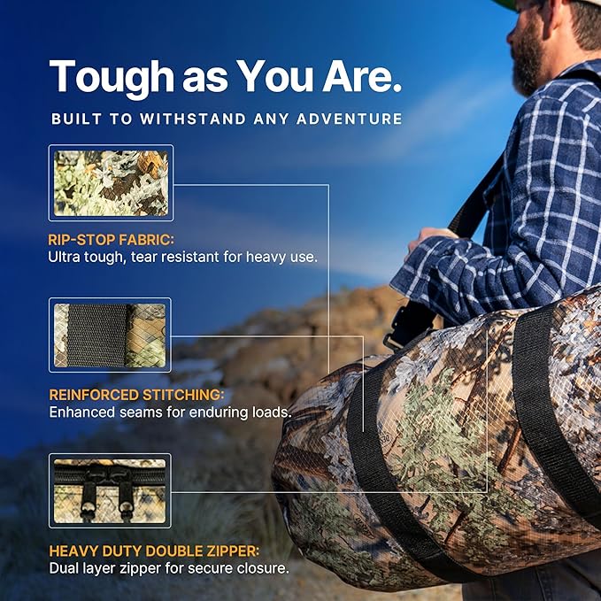- DESIGNED FOR COMFORT & PORTABILITY: No more painful straps! Our travel duffle bags feature ergonomic handles and a lightweight yet rugged design that makes it the ideal foldable duffle bag for travel that’s easy to transport.