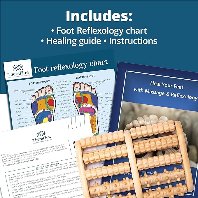 TheraFlow Foot Massager for Plantar Fasciitis Relief - Mom Gifts for Women & Gifts for Dad, Wooden Foot Roller Massager with Deep Tissue & Reflexology Nubs (Includes Reflexology Chart)