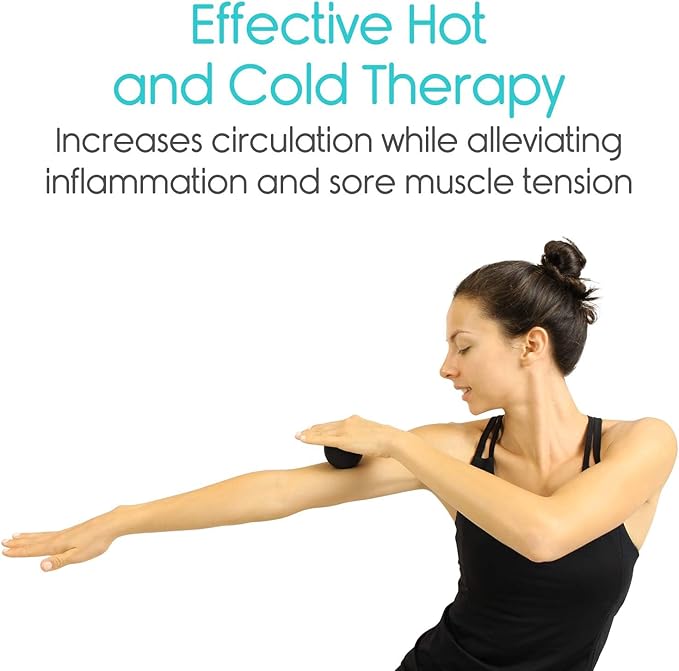 - EFFECTIVE HOT AND COLD THERAPY: Providing safe and effective hot or cold therapy, the Vive massage ball set alleviates inflammation and sore muscles, relieves tension and increases circulation and mobility. Contains an ergonomically designed foot roller to target tired, aching feet, plantar fasciitis and heel spurs, two studded massage balls with varying levels of firmness for acupuncture alternative and a smooth massage ball for targeted deep tissue massage. Great to use with CrossFit, yoga and