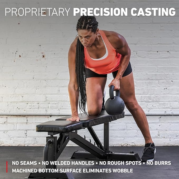 - Wide Flat Machined Base: Our kettlebells with handles feature a special flat machined base designed to eliminate wobble when placed on the floor