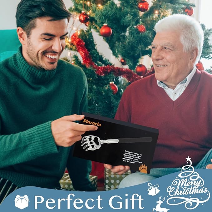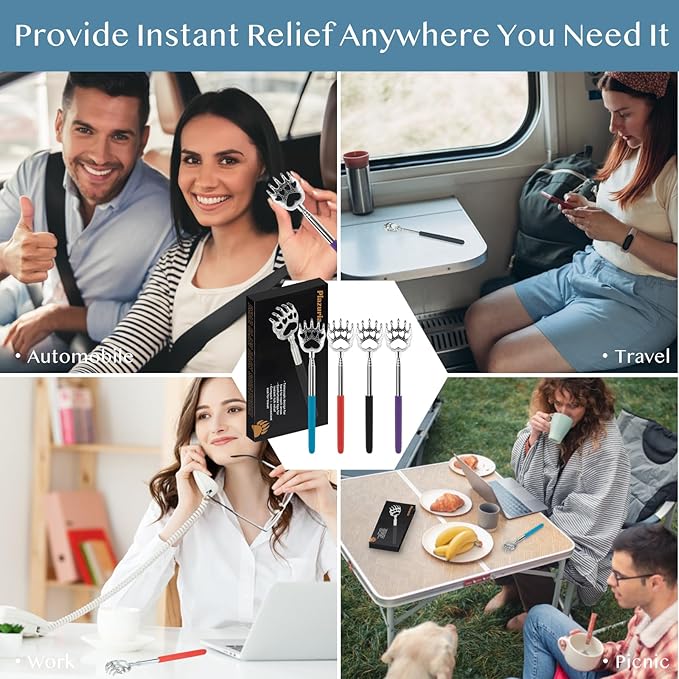 (4-Pack) Extendable Back Scratchers - Metal Claws with Telescopic Rubber Handles - Stocking Stuffers for Men, Women, Kids - Christmas Gift