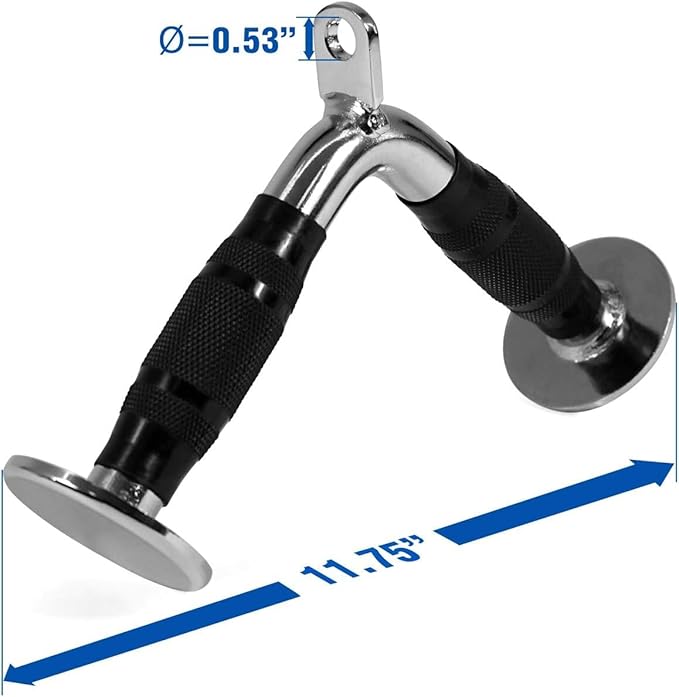 - RUBBER, ANTI-SLIP HANDLE AND FLAT KNOBS: The textured knurling handles on this tricep pull down attachment ensure a strong, firm grip, while the chrome finish minimize corrosion and rust for any straight bar or tricep v bar cable attachment.
