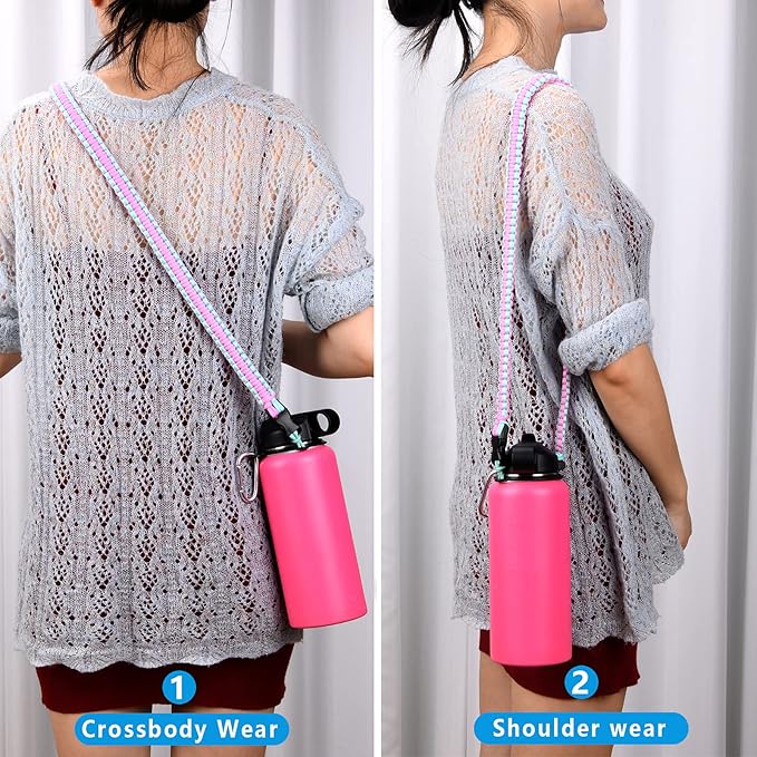 - VERSATILE DESIGN:Special design allows you hold the water bottle in hand or carried over shoulder.Suitable for most body types, adults or kids.Perfect for outdoor hiking, camping, biking, backpacking,yoga, etc all sport and outdoor activities. Package Including:1x Paracord Handle ,1x Long shoulder strap(Water Bottle Not Included)