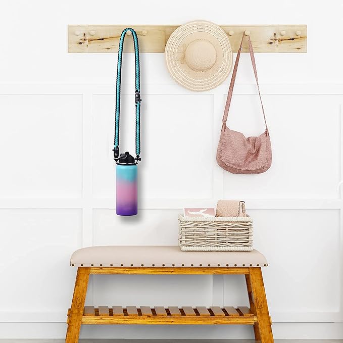 - VERSATILE DESIGN:Special design allows you hold the water bottle in hand or carried over shoulder.Suitable for most body types, adults or children.Perfect for outdoor hiking, camping, biking, backpacking,yoga, etc all sport and outdoor activities. Package Including:1x Paracord Handle ,1x Long shoulder strap(Water Bottle Not Included)