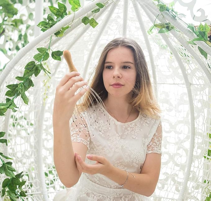 USAGA 28 Finger Head Scratcher, Head Massager, Scalp Massager, Stocking Stuffers Gift for Scalp Body Relaxing Wood Handle (1 Pack)