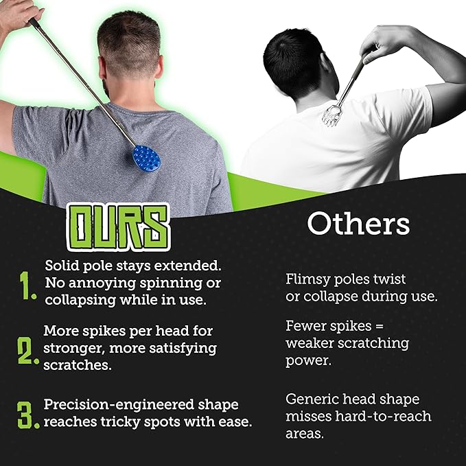 - VERSATILE FAMILY SCRATCHER: Our extendable back scratcher works flawlessly for humans of all ages, but your pets will love it too - dogs and cats go crazy for a good scratch session with the gentle end. It's become the household scratcher tool that everyone fights over, from teenagers with hard-to-reach acne to grandparents with chronic back itches. Makes an unexpectedly thoughtful gift that combines humor with genuine usefulness - people laugh when they unwrap it, then thank you later.