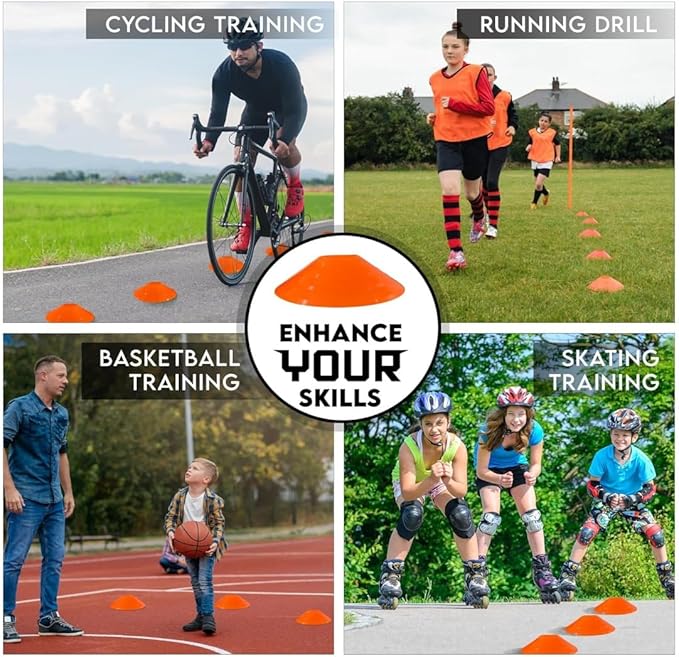 • 🏆 Pro-Level Agility Training: Trusted by coaches & Professional for dribbling drills, obstacle courses, and dog training. Use disc cones for sports training, like soccer, basketball, Bike training or backyard Olympics