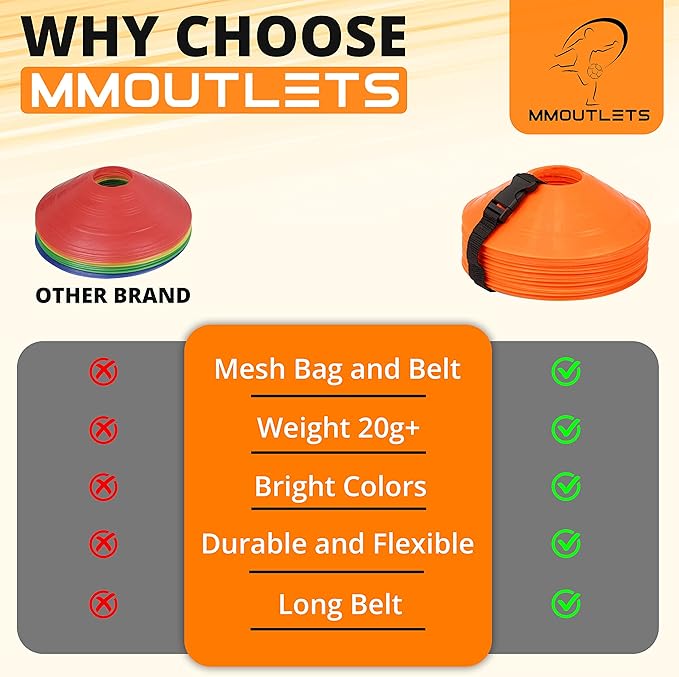 - 🔥 40 Cones + Strap Holder & Bag: Maximize training with 40 soccer cones – 2X more than competitors in half the price. Includes a 13-inch strap + mesh bag for quick setup and storage.