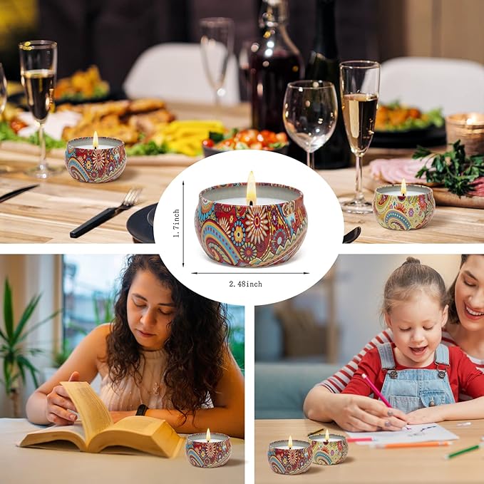 - Portable Travel Candles Tin Set: 2.5 oz small tin of aromatherapy candles can be carried easily, suitable for business or travel. A familiar taste would be found in a strange place relieving fatigue and improving sleep quality.