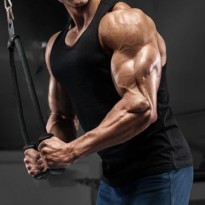 • Superior Quality: Constructed of enhanced black nylon braided rope makes the tricep rope more sturdy and durable; Without worrying about fracture problems; Both ends of the ergonomic tricep rope are respectively connected to a high-impact plastic handle