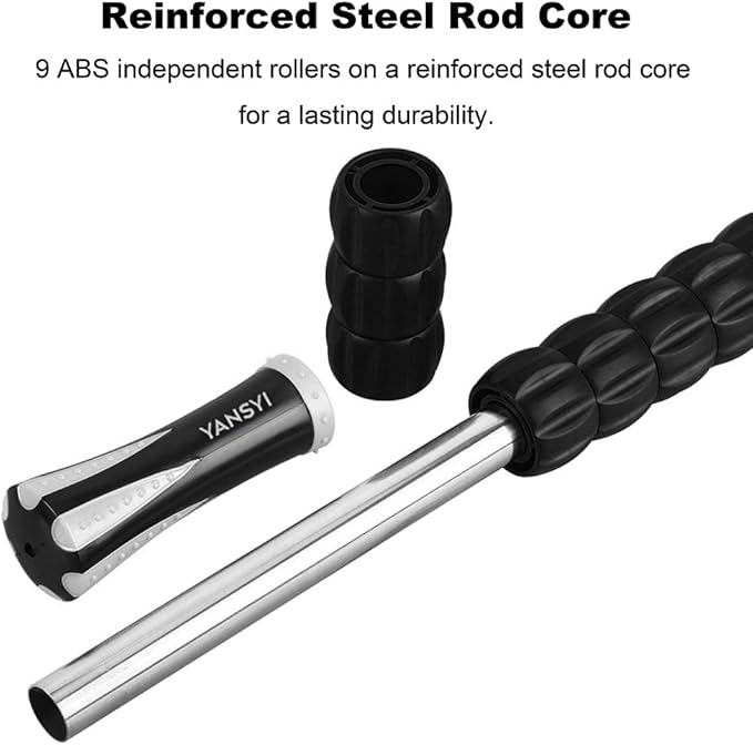 - Great Material and Design: Made from industrial strength materials, thermoplastic rubber and polypropylene handles allow for an ergonomic grip and 9 ABS independent rollers on a steel rod core hit even the smallest pressure points and muscle fibers