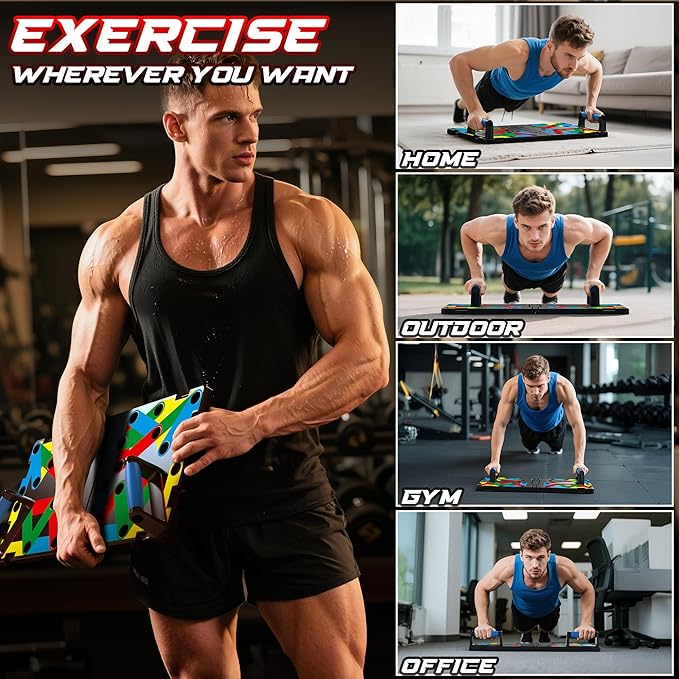 - Anytime, Anywhere: Lightweight, collapsible push-up board that can be used at home, outdoors, in the office or at the gym. stays stable on any surface