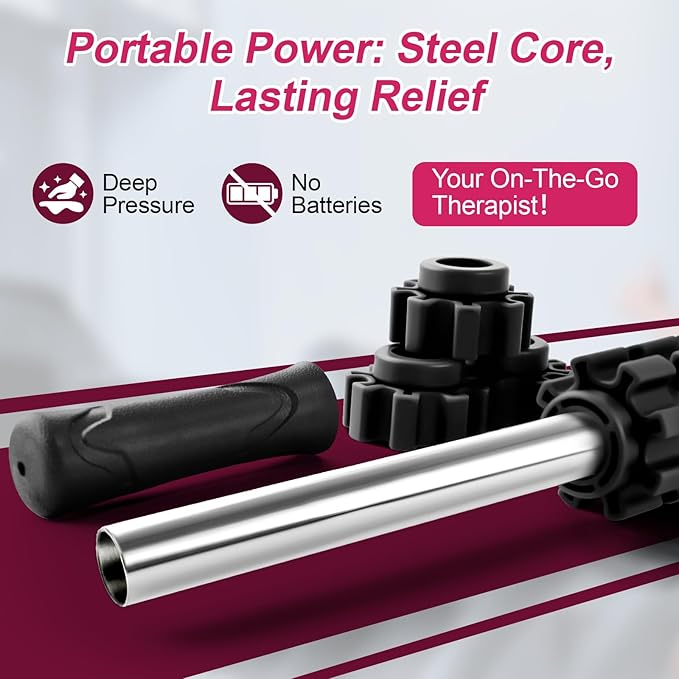 - 【Portable for Travel】Only 17x1.6 inches size and 10.6oz, zero-flex perfect pressure, this travel stick is ideal for home, gym and outdoor sports. Easily stores and stows in your kit bags or back-pack for portable use wherever you need soothing relief after running dancing or yoga. With regular massaging, you can increase blood circulation and improves your muscles flexibility.