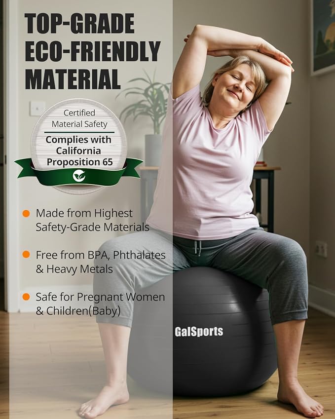 - 【High-Quality Materials】 Each of the Galsports yoga ball chiair has passed testing according to CA Prop 65 requirements, which means it does not contain any heavy metal like Pb and Cd, or 10 types of harmful phthalates. Therefore, by choosing the Galsports exercise ball, you are wisely choosing to protect the health and well-being of you and your family.
