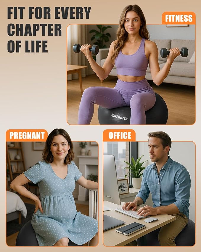 - 【1 Ball, Multiple Uses】The Galsports stability ball works wonders in relieving your lower back pain by strengthening your core and back. Use it to also work other various parts of your body, enjoy heavenly pre/post-workout stretches, and improve your posture with ease!