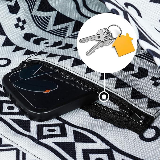 - Storage: The top is 15.5 inches wide,so you can store other yoga equipment and accessories like your yoga block,yoga strap,yoga mat towels,bath towels,sandals,or even a change of clothes after working out! Two Pockets Design: one large side pocket for water bottle,face towel and sunglasses. And one small interior zipper pocket for keys,wallet,cards and phone. It's not enough to have a yoga bags that? just"long enough". Because it ALSO needs to have enough storage AND vibrate with your persona.