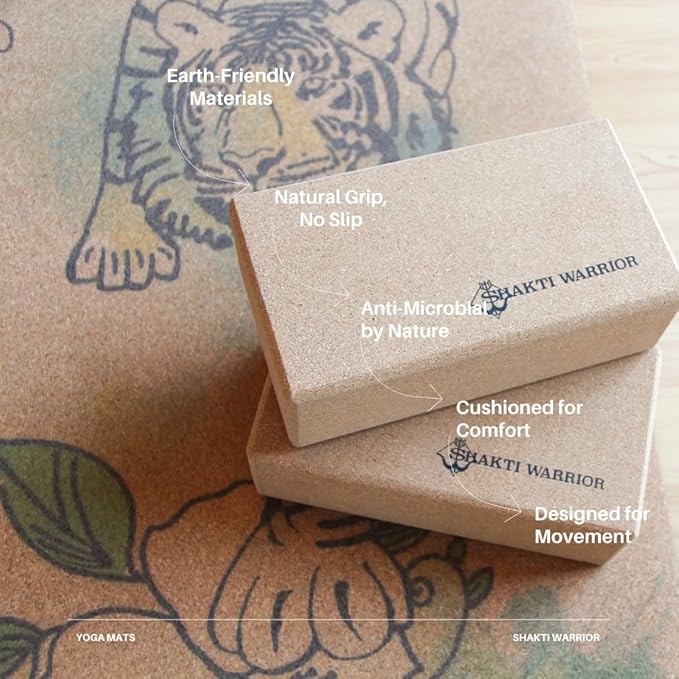 Shakti Warrior Cork Yoga Mat - Artist Designed, Premium Printed Eco-Friendly Non-Slip mat, Great for Regular & Hot Yoga, Pilates, Workouts 72 inch x 24 inch x 3mm Thick