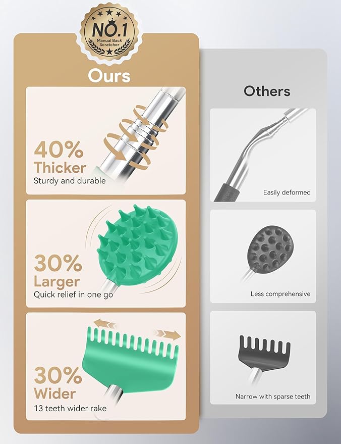 - Perfect Gift Ready: Beautifully gifted box, no wrapping needed. This 4-in-1 back scratcher includes 4 detachable heads for back, neck, scalp, and beard. Great as Christmas gifts, stocking stuffers, or White Elephant presents for anyone