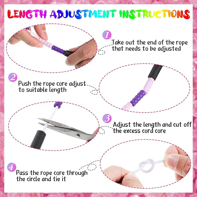- Package Includes: you will receive 36 pieces of beaded jump ropes for kids and adults in 9 colors, 4 pieces for each color, enough to meet your various use and replacement demands, which are also thoughtful gifts for your loved ones, such as friend, family, kids and more