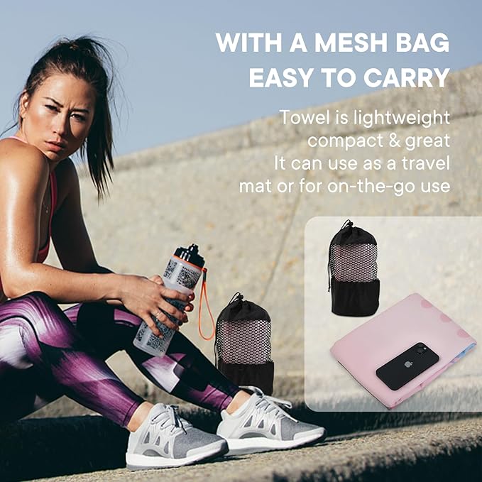 - HYGIENIC AND HEALTHY: By using this yoga towel on top of the studio mat, you can put a hygienic layer between you and the mat. This will increase your confidence and remove your worries about whose sweat and germs you'll be practicing on. It's lightweight, easy to carry, and fits nicely in your bag.