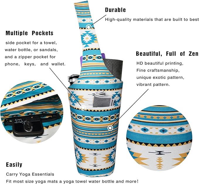 - Yoga Mat Bags is made of high quality materials, no fasteners, no buckles and a comfortable shoulder strap. Combined with fine hand stitching, the bag's printed designs add more color and value to this yoga bag, vibrant and eye-catching. With yogis' genuine needs in mind, this yoga mat carrier bag brings much convenience into daily organization and storage of the yoga accessories, multi-functional and practical. A all-match yoga bag.