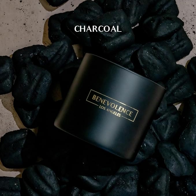 Benevolence LA 3 Wick Candle, Charcoal Large Scented Candle | Soy Candles | Gifts for Women and Men | Home Fragrance | Aromatherapy | Bathroom Freshener 14.5 Oz, 45 Hour Burn