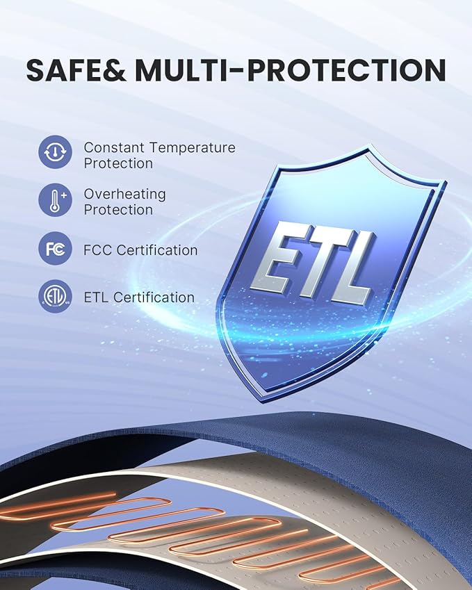 • Fast Heating & ETL Safety Certified: The built-in PTC/NTC heating wires of the electric heating pad are tightly distributed to achieve fast and stable heating effect; has an overheating protection system as well as constant temperature protection, ETL certified ensuring your safe use.