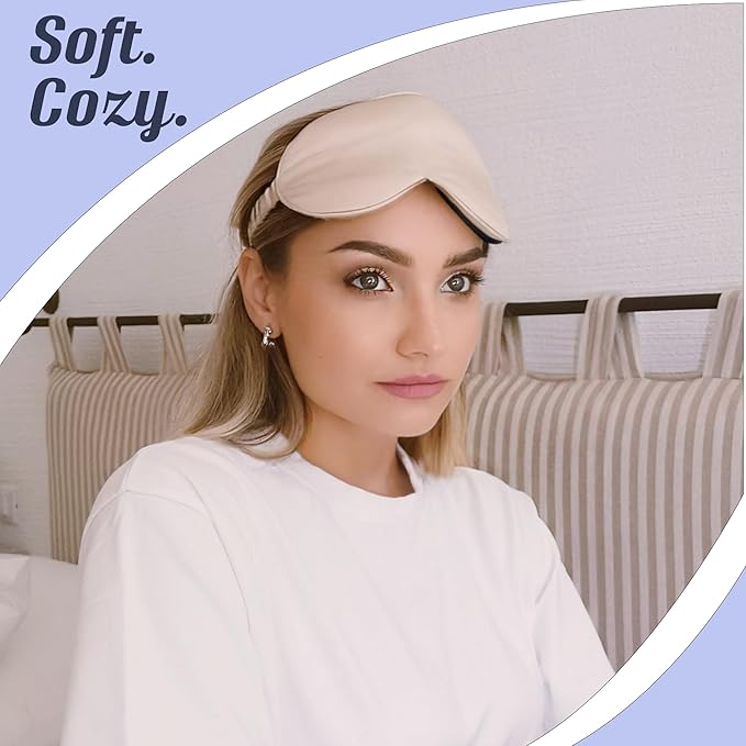 - COMFORTABLE SLEEP & RELAXATION: This silk sleep eye mask features a padded eyecup design with a nose contour and puffed edges for maximum comfort. The adjustable silk-lined elastic band ensures a perfect fit, while the 3D shape effectively blocks out light without putting pressure on your eyes. Additionally, the silk material helps to maintain skin hydration, allowing for a truly rejuvenating night's rest.