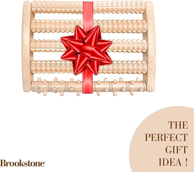 Brookstone Wooden Foot Roller Massager - Deep Tissue Reflexology & Trigger Point Therapy for Plantar Fasciitis, Arch & Heel Pain Relief - Portable Manual Massager, Ideal Gift for Home or Travel