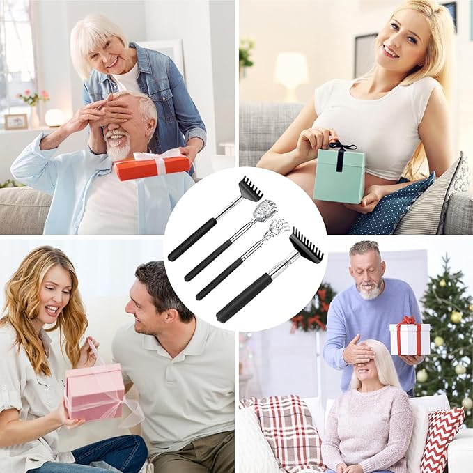 Back Scratcher Gift Set, 4 Pack, Upgraded Portable Extendable Stainless Steel Telescoping Massage Tool, Stocking Stuffers for Men Women