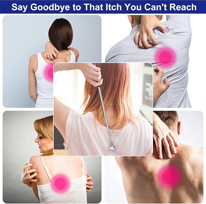 - HIGH QUALITY MATERIAL: Our extendable back scratcher is made from stainless steel that will never rust, keeping it brand new. The claw part is hard to bend, break, or deteriorate after a long time of use. The anti-slip handle is built from soft rubber and fits perfectly in your hand.