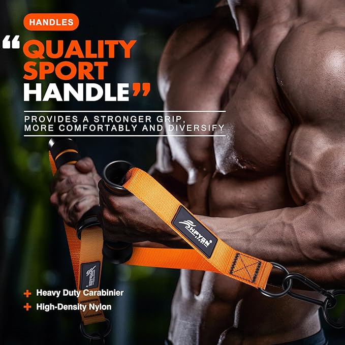 - Premium Quality Materials - Our cable machine handles are thoughtfully designed to conform to the natural structure of your hand, ensuring ultimate comfort and grip. The extra-wide design provides ample space for your hands, while the thick woven nylon webbing and heavy-duty stitching add durability and a luxurious texture.