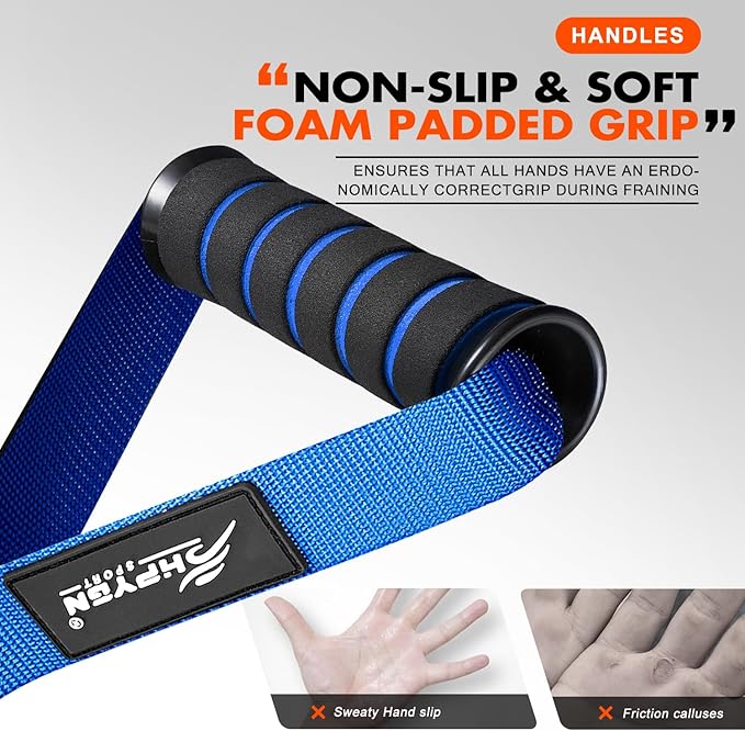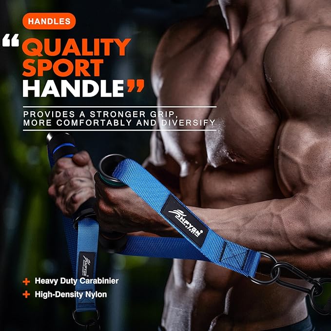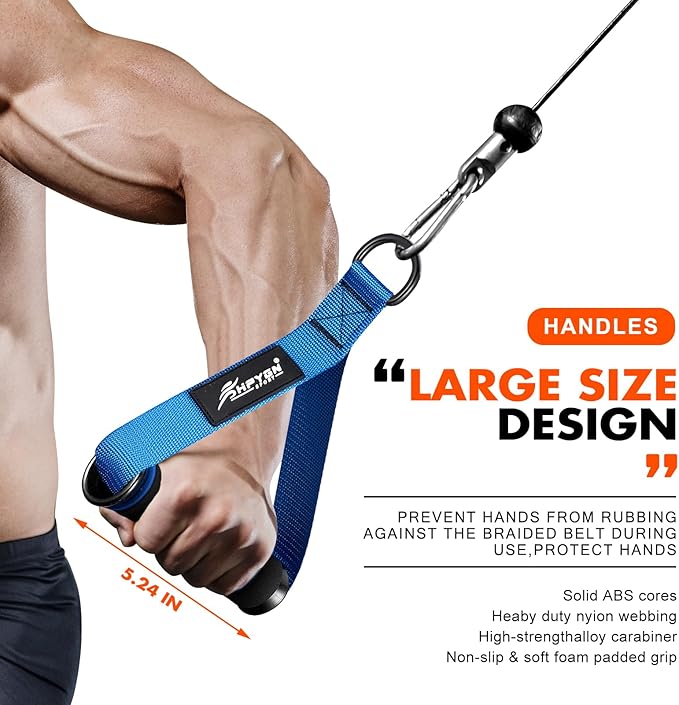 - Premium Quality Materials - Our cable machine handles are thoughtfully designed to conform to the natural structure of your hand, ensuring ultimate comfort and grip. The extra-wide design provides ample space for your hands, while the thick woven nylon webbing and heavy-duty stitching add durability and a luxurious texture.