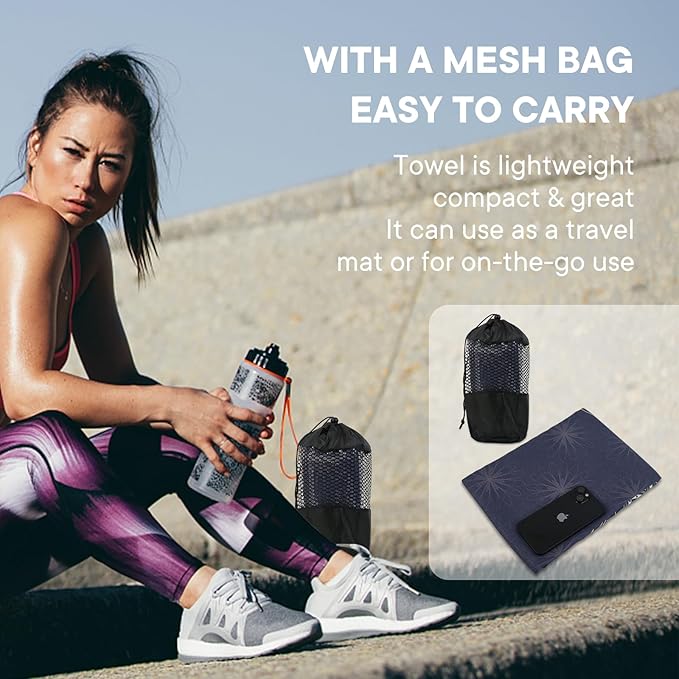 - HYGIENIC AND HEALTHY: By using this yoga towel on top of the studio mat, you can put a hygienic layer between you and the mat. This will increase your confidence and remove your worries about whose sweat and germs you'll be practicing on. It's lightweight, easy to carry, and fits nicely in your bag.