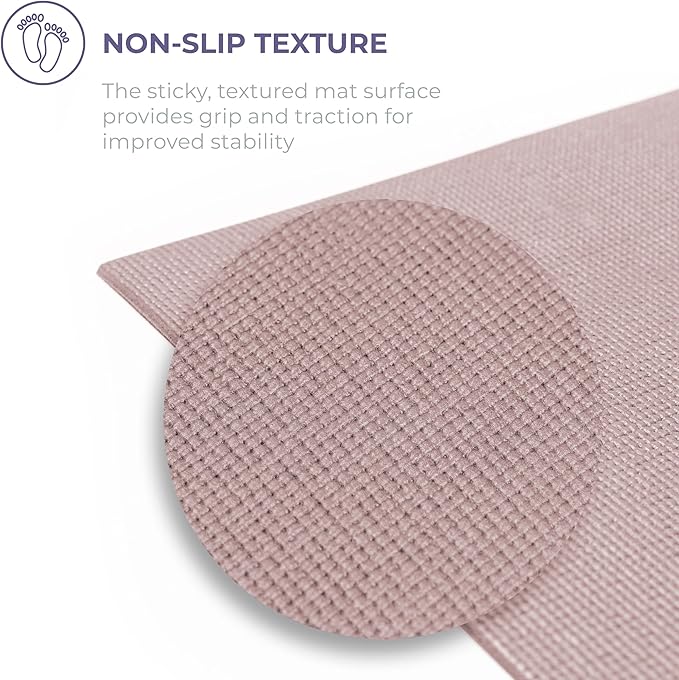 • Non-Slip: The fitness mat features a textured surface for stability and balance when changing or maintaining poses; created with an interior fiber mesh layer to reduce mat stretch and resist tears for longevity