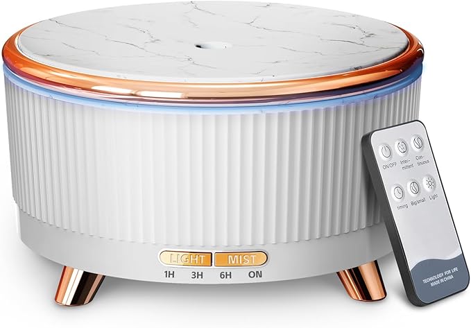 • REMOTE REMOTE CONTROL, MULTIPLE MODES:You can set the time, spray and light effortlessly and easily by remote control or button. The product has 7 colors of light with 3 light modes and 4 timer settings (ON/1H/3H/6H). And it provides 3 modes of heavy mist/light mist/intermittent mist for your choice.