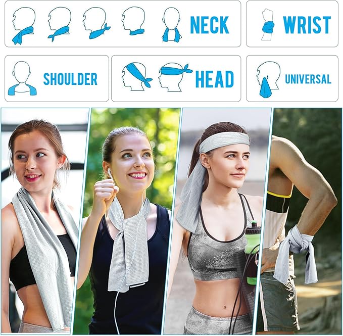 - ð§£ãMultifunctional UsageãCooling towels for hot weather, perfect for people suffering with side effects of heat stress, hot flashes, outdoor activities, indoor exercise, fever or headache therapy, heatstroke prevention, sunscreen protection, cooling while absorbing.