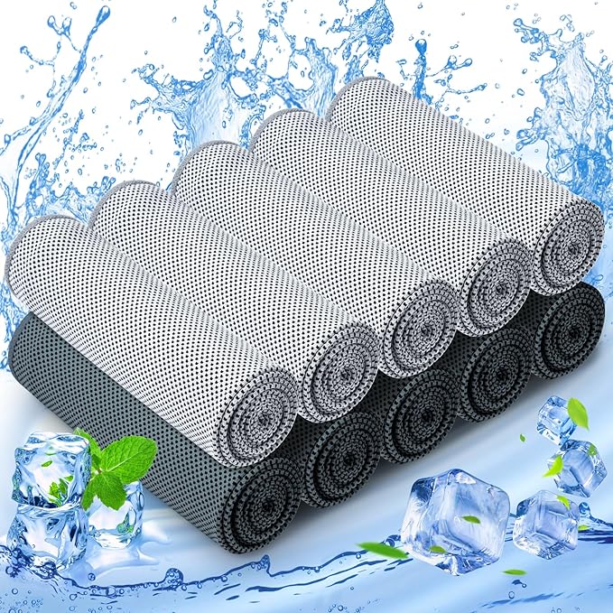 MENOLY 10 Pack Cooling Towels, Sweat Towels Cooling Towels for Neck and Face, Microfiber Towel Soft Breathable Towel for Gym, Yoga, Camping, Running, Fitness, Workout & More Activities(32"x12")