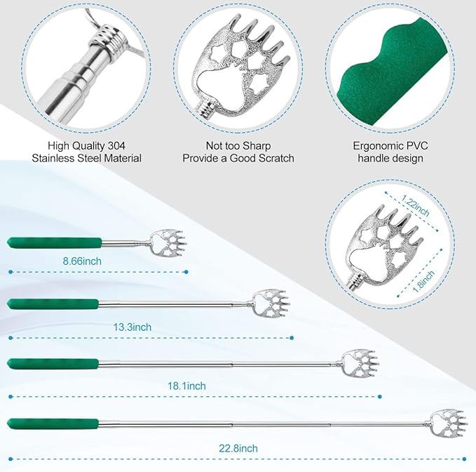 - Long Enough: 7-teeth Rake Claw and 15-teeth Rake Claw backscratcher can extend up to 7.67 inch to 26.7 inch, the Bear Claw backscratcher can extend to 8.66 inch to 22.8 inch which easily fits into you pockets, help you easily scrape any itchy skin area