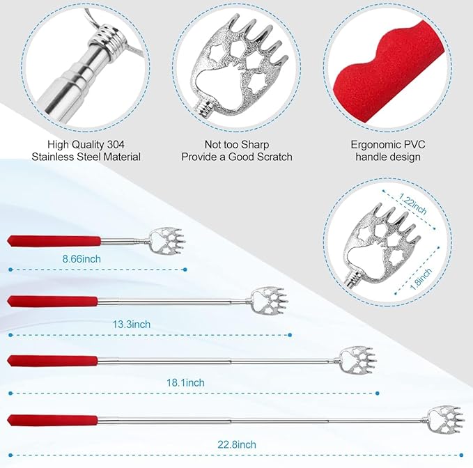 - More Uses - Almost no one reaches the back or anywhere else. Our retractable back scraper helps you reach hard-to-reach places. It can help you eliminate the pressure, anxiety, and boredom. It is a useful yet super fun gadget