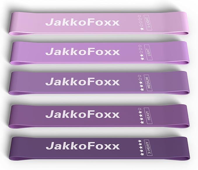 - High end exercise bands. Our 12″ by 2″ heavy duty loop resistance bands come in 5 varying resistance levels. This makes them perfect whether you are just starting to workout or a seasoned workout warrior. Our extra light and light bands are great for beginners, while our medium, heavy and extra heavy exercise bands are targeted for more intermediate and advanced strength training.