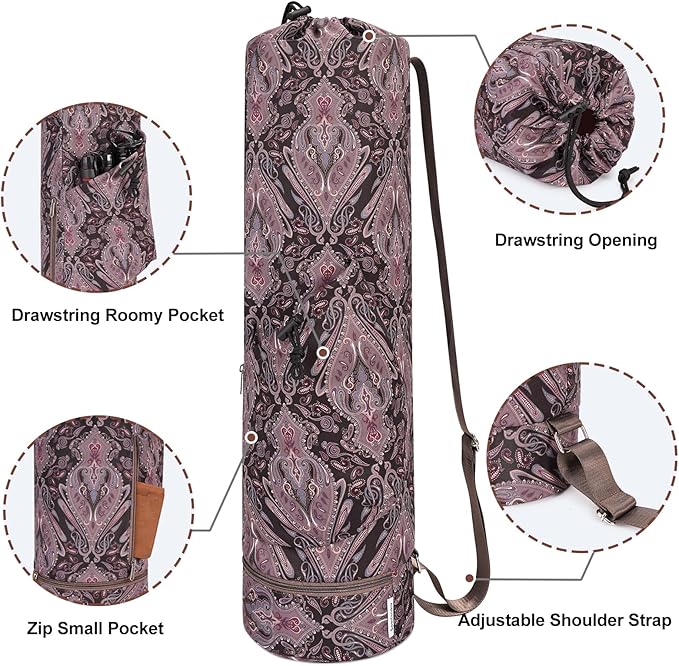 - 【0.8-inch Diameter Larger】 Our updated sport bag is 0.8-inch diameter larger than others’. Full dimensions: 31"L x 7.5" Diameter,which can hold yoga mat size up to 69"L x 23"W x 2/5"(10mm)Th (23" wide and 7" in diameter when rolled up). And the quick-open drawstring make you grab your mat in a flash whether you’re carrying your mat & essentials to class, or a yoga training trip (YOGA MAT NOT INCLUDED)