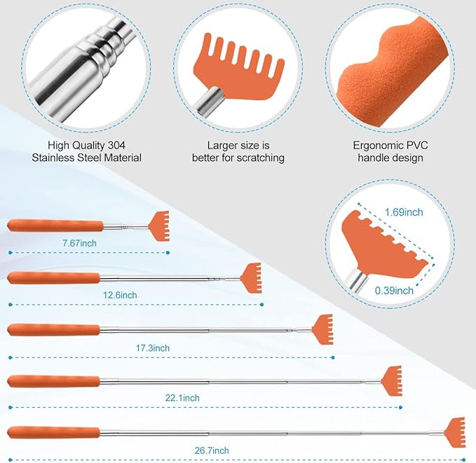 - More Uses - Almost no one reaches the back or anywhere else. Our retractable back scraper helps you reach hard-to-reach places. It can help you eliminate the pressure, anxiety, and boredom. It is a useful yet super fun gadget