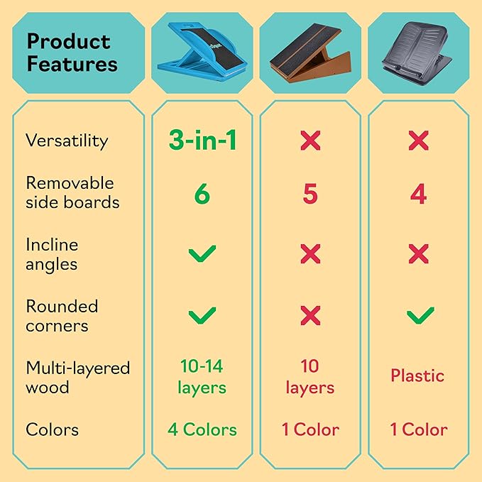- 3-in-1 Slant, Stretch, and Balance Board - Enjoy the enhanced functionality of our innovative design, combining the benefits of a slant board, a stretching platform, and a balance board. Perfect for squats, stretching exercises, and balance training, this all-in-one tool takes your fitness routine to the next level!
