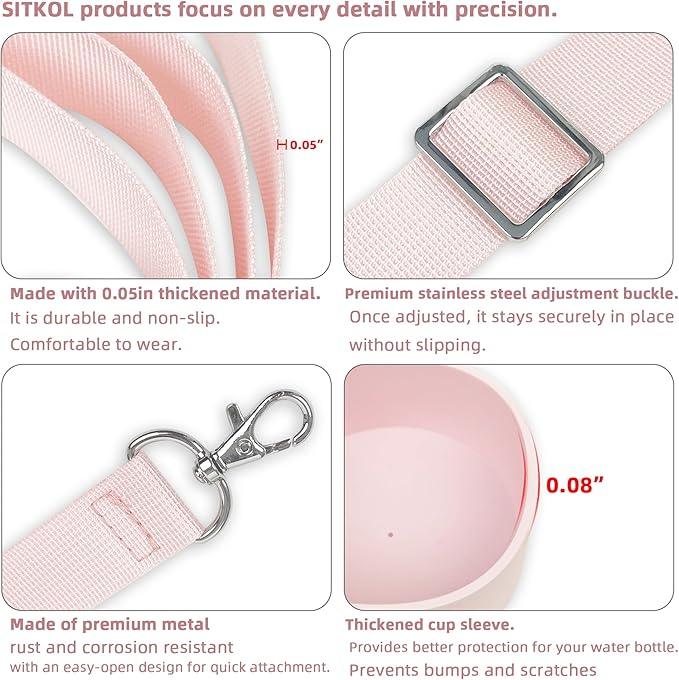- Premium Material: The shoulder strap and handle strap are made of thickened nylon material with an adjustable design. You can easily switch between the two straps based on your needs, adding great versatility to your water bottle