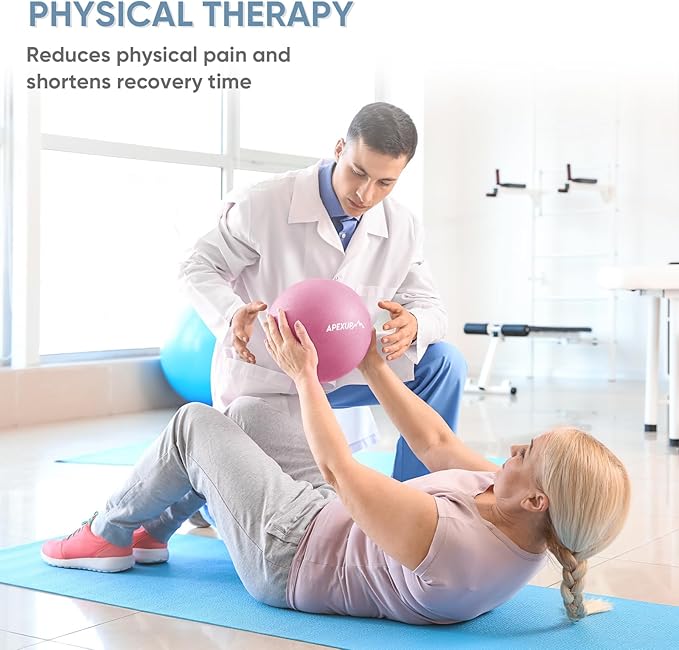 - [VERSATILE] This small yoga ball is suitable for various exercises, including yoga, Pilates, barre, strength training, core workouts, stretching, balance training, ab workout, and physical therapy. It targets various muscle groups such as the core, posture, and back muscles. In addition, it aids in recovery from issues related to the hip, knee, or sciatica