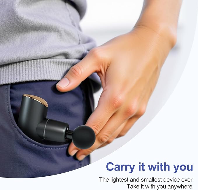 - SMALL AND CONVENIENT: This massage gun weighs 0.99 pounds, which is easy to carry and can relieve muscle tissue pain all over the body at any time. It adopts unique metal noise reduction technology. Low noise (<50dB), can be used in the office or gym without causing interference. It is a good companion for soothing muscle soreness and relieving pain