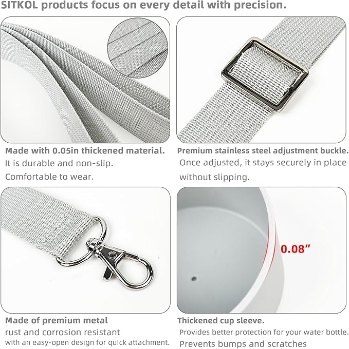 - Premium Material: The shoulder strap and handle strap are made of thickened nylon material with an adjustable design. You can easily switch between the two straps based on your needs, adding great versatility to your water bottle