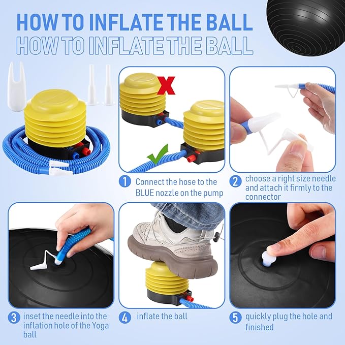 - Various Colors: you will receive 4 pieces of exercise balls for working out in black, equipped with 1 piece of foot pump, 1 piece of air pull, and 2 pieces of air plugs; The complete set can meet your exercise needs